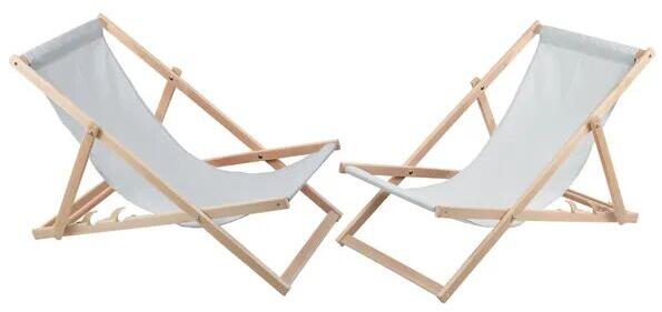 2 db összecsukható bükkfa napozóágy világosszürke vászonnal, 119×60 cm