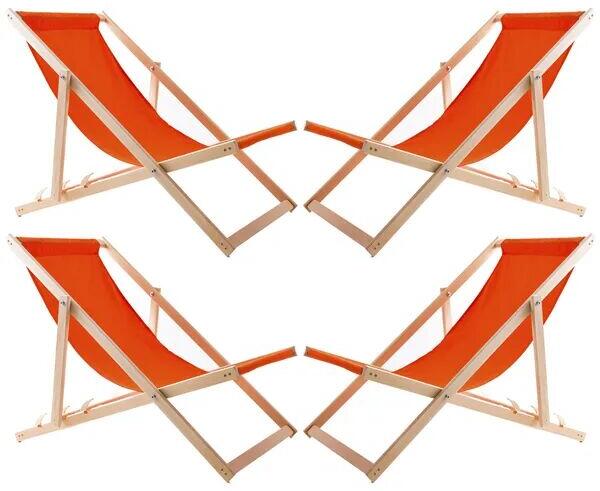 4 db összeszerelt bükkfa napozószék szett, narancssárga