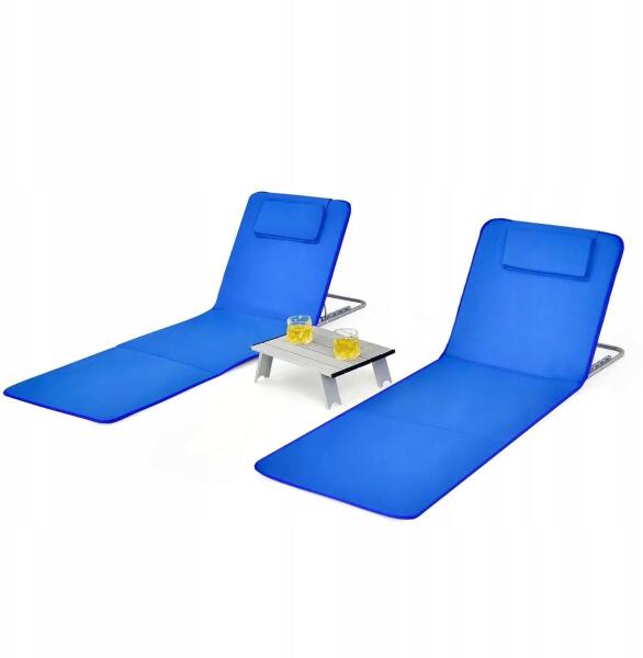Costway Strand napozóágy szett 2 db összecsukható asztal hordozható kék Costway (NP10213NY)