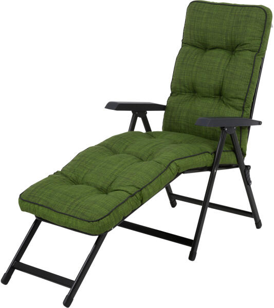 Kényelmes kerti nyugágy, zöld színben ☀️ Ideális választás a kertbe vagy az erkélyre a napsütéses napokon való pihenéshez. Ez a kényelmes nyugágy biztosítja a tökéletes relaxációt. Főbb jellemzők:Robusztus kivitel: Ovális acélcsövekből készült, porszórt bevonattal a tartósságért ?️ Kényelmes párnázás: Puha, strapabíró pamut-poliészter párnával, nedvességálló polipropilén aljzattal és vágott pelyhes szivacs töltettel. A párnák extra kényelmet biztosítanak. ☁️ Praktikus zseb: A háttámla felső részén található zseb a kerethez való rögzítéshez. ? Nagy teherbírás: Maximális teherbírása 150 kg. ? Összecsukható: Könnyen tárolható és szállítható. ? Méretek: Összecsukva: 60 x 25 x 98 cm Kinyitva: Szélesség 59 cm, Mélység 142-188 cm, Magasság 64-105 cm Párna méretek: 180 x 48 x 8/10 cmKényelmes ülés: 75 cm-es háttámla magasság, 48 cm-es ülésmélység, 102 cm-es ülésmélység lábtartóval, 48 cm-es ülésszélesség és 45 cm-es ülésmagasság a talajtól. Élvezze a kényelmes pihenést a Patio Lena nyugágyban!
