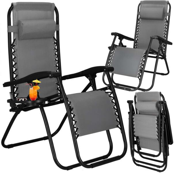 SPRINGOS összecsukható zéró gravitációs kerti Nyugágy - Sötétszürke (GC0065)