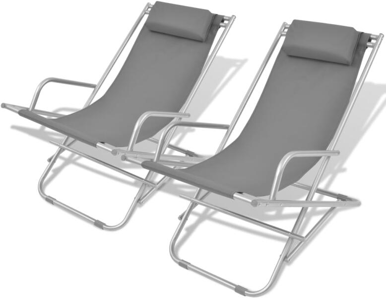 vidaXL 2 db szürke dönthető acél napozószék (42938)