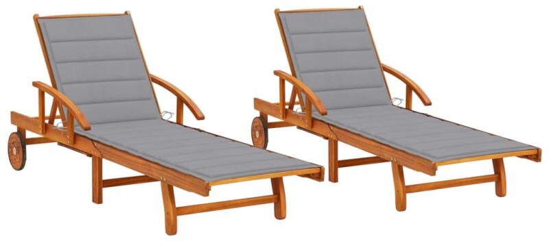 vidaXL 2 db tömör akácfa napozóágy párnákkal (3077331)