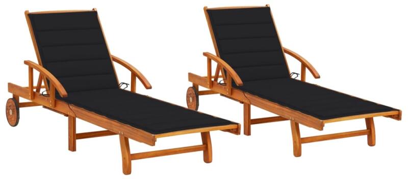 vidaXL 2 db tömör akácfa napozóágy párnákkal (3077337)