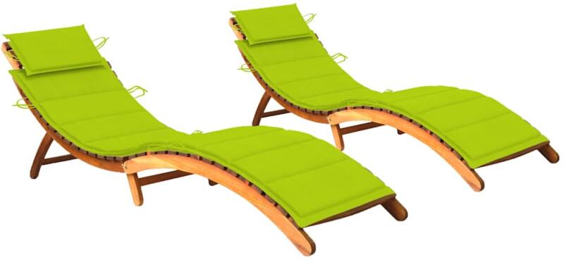 vidaXL 2 db tömör akácfa napozóágy párnákkal (3077372)