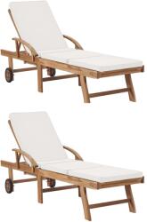 vidaXL 2 db tömör tíkfa napozóágy krémszínű párnával (3054633)