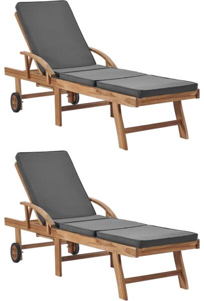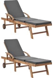 vidaXL 2 db tömör tíkfa napozóágy sötétszürke párnával (3054634)