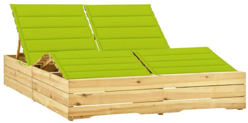 vidaXL impregnált fenyőfa kétszemélyes napozóágy élénkzöld párnákkal (3065995)