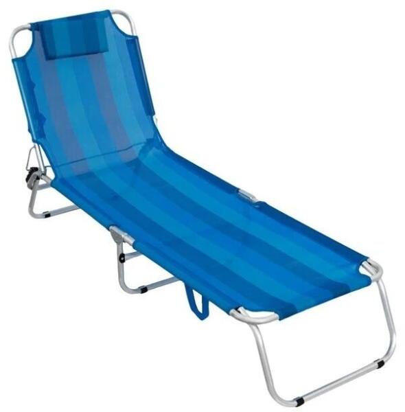 Összecsukható kék strand napozóágy párnával a tökéletes pihenésért ?️ Élvezze a napsütést és a pihenést bárhol ezzel a kényelmes és praktikus strand napozóággyal. Könnyen összecsukható, így egyszerűen szállítható és tárolható. Főbb jellemzők:Kényelmes párna: A beépített párna extra kényelmet biztosít a pihenéshez. Állítható háttámla: 3 fokozatban állítható a háttámla, hogy megtalálja a legkényelmesebb pozíciót. Összecsukható kialakítás: Könnyen összecsukható és hordozható a praktikus fogantyúknak köszönhetően. Tartós anyag: Perforált textilszövetből készült, erős varrásokkal a hosszú élettartam érdekében. Könnyű alumínium váz: Könnyű és tartós alumínium váz a könnyű hordozhatóságért. Műszaki adatok:Tulajdonság ÉrtékSzín KékAnyag AlumíniumMaximális terhelés 100 kgMéretek 190 x 57 x 27 cmEz a napozóágy ideális választás strandoláshoz, kempingezéshez vagy akár a kertben való pihenéshez. A kényelem és a praktikum tökéletes kombinációja!